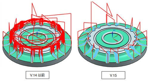 等高加工ジグザグ動作の場合、より少ない逃げ回数で加工できます