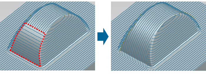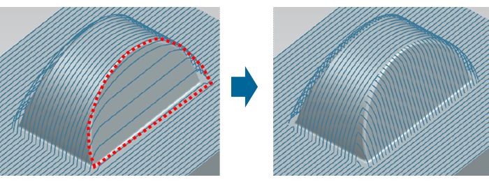 In addition to [Switching Angle] in the previous version, switching position of the path can be adjusted using the surface boundaries. This function enables path switching in the position which is suitable to the geometry and the position which is easy for polishing.