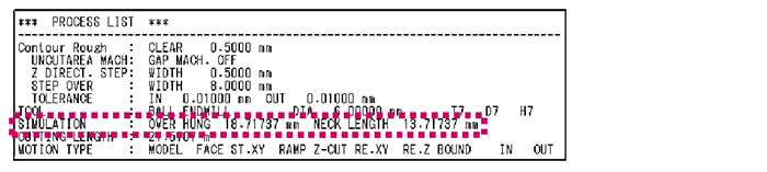 The calculation results of simulation in FF/SIM (overhang length and neck length) are described in each machining instruction as follows.
